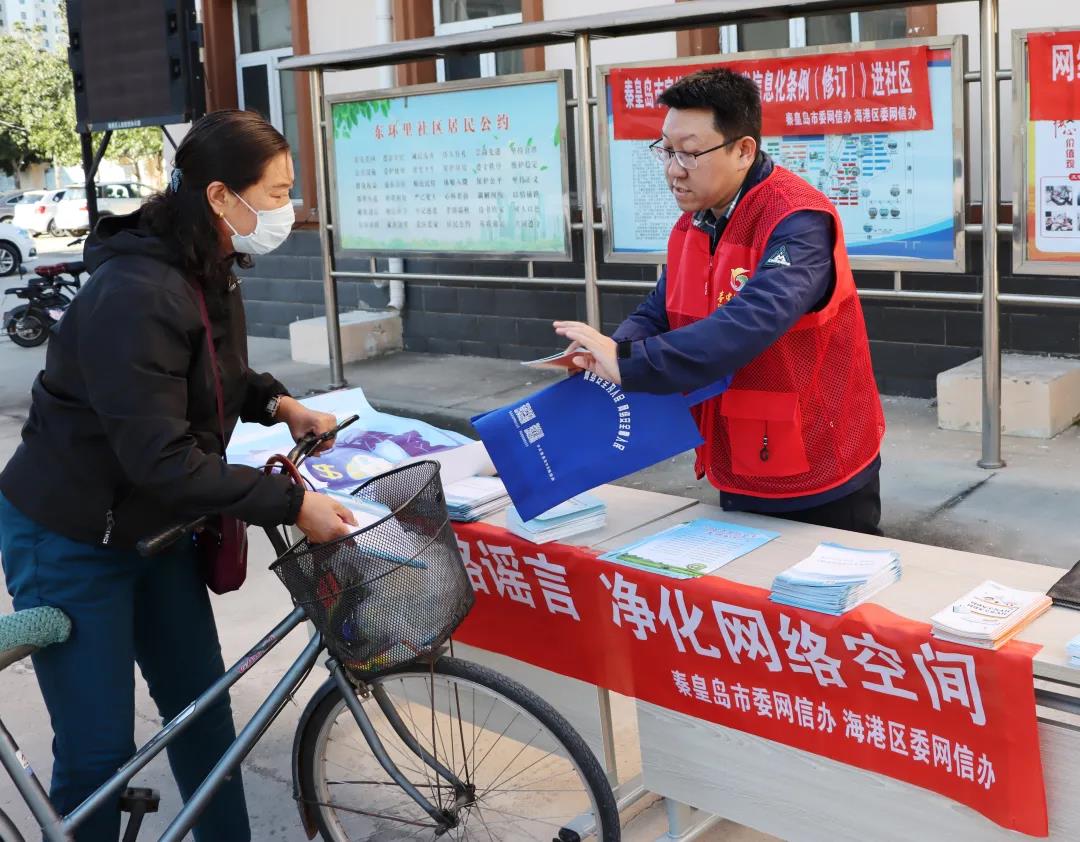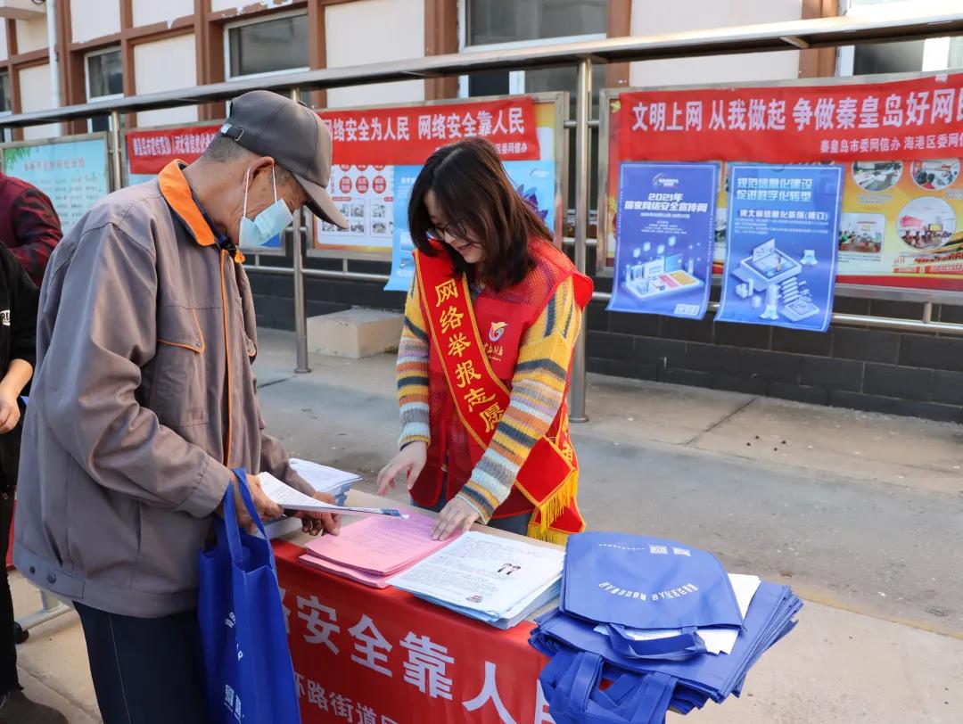 10月11日,2021年国家网络安全宣传周秦皇岛活动拉开帷幕,为进一步让网络举报和辟谣工作扎根基层、深入人心,河北省秦皇岛市网信办举报中心联合海港区委网信办在东环里社区精心组织开展了“抵制网络谣言·净化网络空间”主题宣传活动。