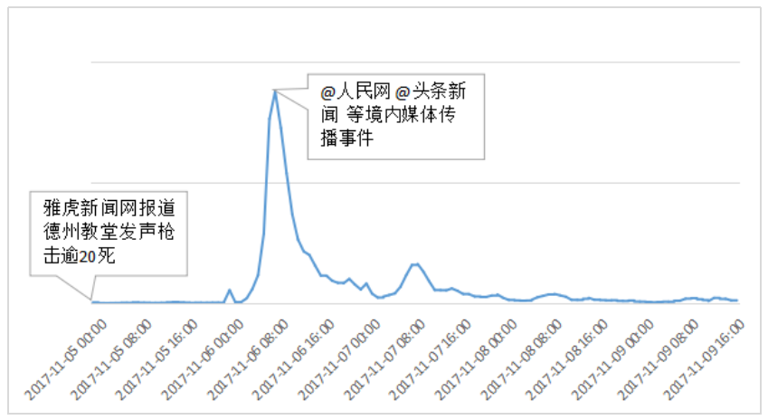 11月6日,美国德州教堂枪击案相关舆情到达高峰。
