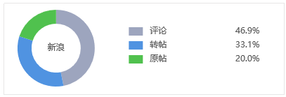 关于#在丽江乞讨成网红#一事的讨论,20%的网友通过新浪微博发布原帖直接表达个人观点;33.1%的网友进行了转帖,进一步扩大了传播范围;评论占比46.9%,网友们各抒已见。
