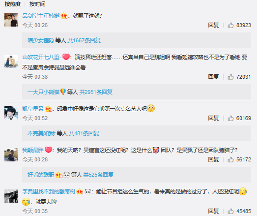 事件一出,网友负面情绪略占上风,其次为正面,占34.3%;中立情绪为22.5%。有网友表示,节目组也是希望能够助推吴谨言更大的名气,为什么反而吴谨言却如此不配合;也有粉丝替吴谨言说话,称这次不愉快,纯属团队失误造成,希望大家不要把怒气上升到演员本人身上。
