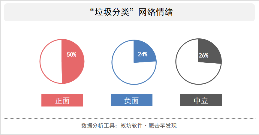 虽然刚推行的垃圾分类管理条例让人秃头,但网民看待“垃圾分类”这一措施还是以正面情绪为主,占比达到50%。长远来看,垃圾分类有助于改善垃圾品质,减少人均垃圾生产量,更好的改善环境卫生。部分负面情绪则是刚实行垃圾分类措施,网民前期对干湿垃圾傻傻分不清的崩溃,上海已经开始了,难道其他城市还会远吗?