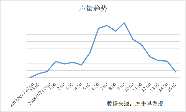 在“暴走漫画”、“抖音”等多家平台、企业因涉嫌侮辱英烈,被有关部门查处或约谈后,还是有人“顶风作案”,并且竟然还是一所高校的团委官微,网友的愤怒情绪被点燃,负面舆论如潮涌,下图的声量趋势变化图显示,从27日23时起,网络舆论迅速发酵聚集,讨论热度一路飙升,截至28日15时,舆情声量于当日上午9时达到峰值,之后虽然讨论量有所下降,但是热度仍在。