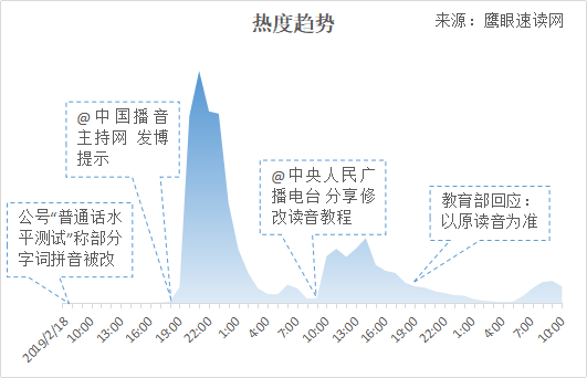 2019年2月18日上午,微信公众号“普通话水平测试”发布文章《注意!这些字词的拼音被改了!》,提示和列举了一些被当前已修改了读音的字词。由于微信相对私密和封闭,这篇阅读量10w+的文章在当时并未造成全网性热议。