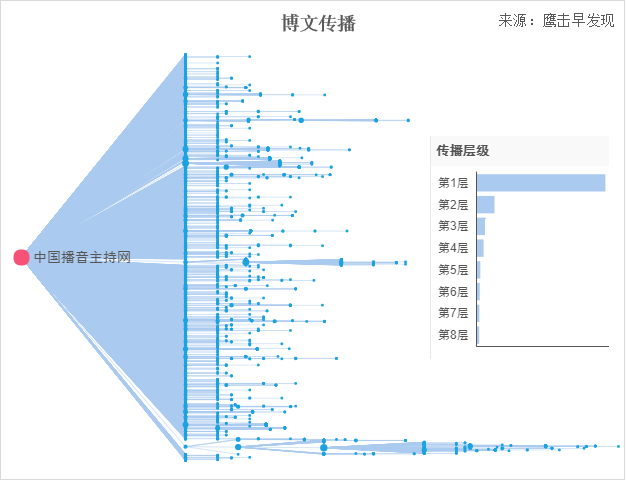 18日近18时,@中国播音主持网 发布了“拼音被改”相关博文,提醒人们新版教科书上的一些注音变更。该条微博获得了6w+次转发,“拼音被改”开始被广泛关注,相关舆情量激增。这条博文传播层级较少,主要集中在第一层,大部分人直接转发了这条微博。