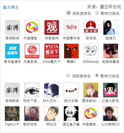 微博上参与传播“拼音被改”事件的重点博主,从活跃度来看,以主流媒体账号为主,微博内容多是相关报道;从影响力来看,则以营销大V为主,这部分博主的微博多以评论为主。