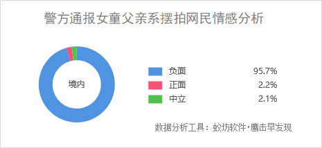 警方迅速作出回应固然值得赞同,摆拍说辞却再次激怒网民,鹰击早发现监测显示,负面情感高达95.7%。舆论场上,“事实就是虐待”、“不配为人父母”等声音格外突出。微博大V@游识猷 认为“摆拍孩子受虐照发给母亲”不叫“斗气”,这是典型的威胁恐吓家暴。