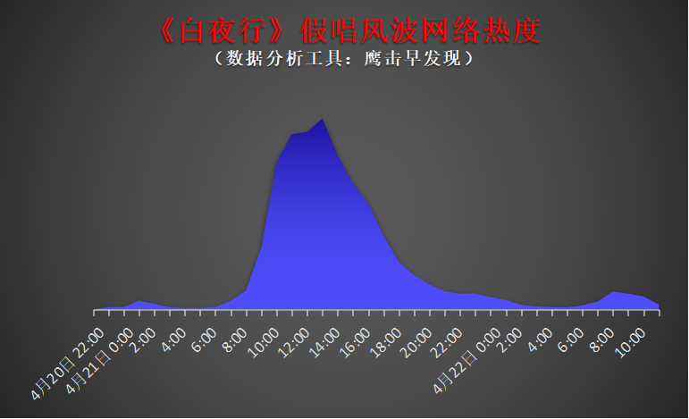 舆情监测软件鹰击早发现系统显示,演出当晚22时起,针对《白夜行》假唱一事的讨论便迅速展开。不少网友认为主办方应防患于未然,做足完全准备,以应付突发状况,而不是开演前告知假唱这种缺少尊重、强加于观众的虚伪做法。