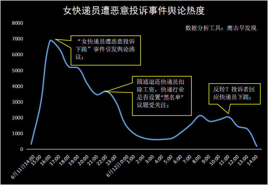 6月11日,山东省广饶县开出一张《证明》,女快递员因包装开裂少了一个芒果,遭到恶意投诉并被扣除2000元,协商后快递员退赔一整箱,却因发的另一快递无法令用户满意,再被投诉直至下跪...民警开出证明并对快递公司给予建议,认为不必为了摒弃尊严求得原谅。该事件迅速引发网友围观,有网民认为警察的做法非常正确,也有网友抨击投诉者,而投诉者则认为自己在合法维权,并非不讲理。舆论观点分歧不一,本文从舆情传播角度梳理事件全过程,看看网民如何看待这一事件?