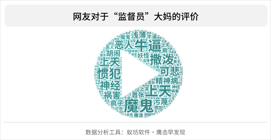 舆情监测软件对网友评价“监督员”牛某某的评论来看,基本上是负面词汇:“魔鬼、精神病、牛逼、惯犯、祸害、恶人......”可见大家对于这类嚣张跋扈,仗势欺人的做派反感至极。