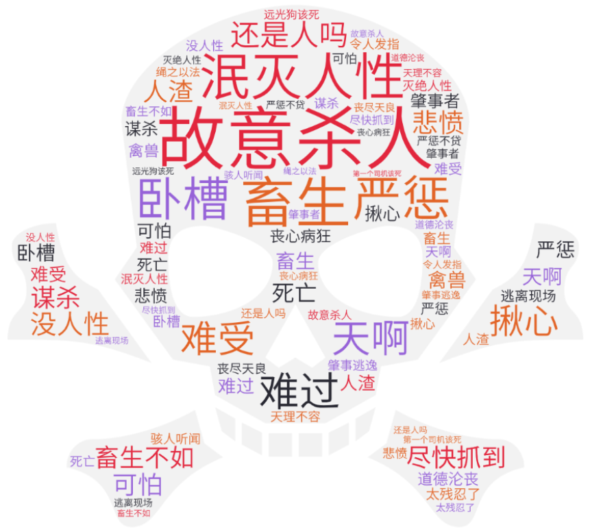 北流一老人惨遭三车连撞当场身亡,3车全部逃逸事件一经爆料迅速引发网友关注和讨论,截至目前,相关话题“老人惨遭三车连撞后身亡”阅读2.8亿,讨论6.8万。对社交网络上关于事件的评论内容进行聚类分析,舆论表现主要集中在以下几点: