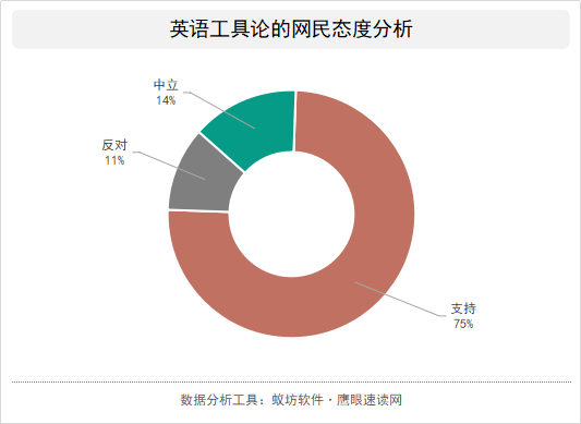 对于英语工具论,有75%的网友持支持态度,他们认为英语其实是一种语言工具,就目前信息市场上,很大一部分的信息都是以英语为载体的,不管是为了了解更多外部的信息,还是为了有更好的学业、职业发展,学习英语还是具有很强的实用性的。