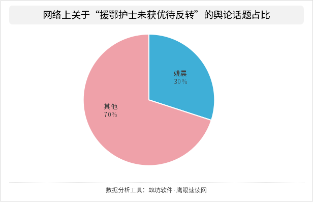 据鹰眼速读网全网舆情监测显示,在“援鄂护士未获优待反转”一事中,姚晨相关信息的出现频率占比30%,这意味着姚晨的参与对于事件热度产生了重要的推动作用。从舆论反馈看,部分大V质疑“为啥每次这种信息都会被姚晨在茫茫的消息中发现并且精准转发呢”,讽刺“互联网真是恶之花绽放的土地啊”、“姚晨如果能转这条,我个人掏五百去抽奖”、“姚晨又不是头次干这事”等等。