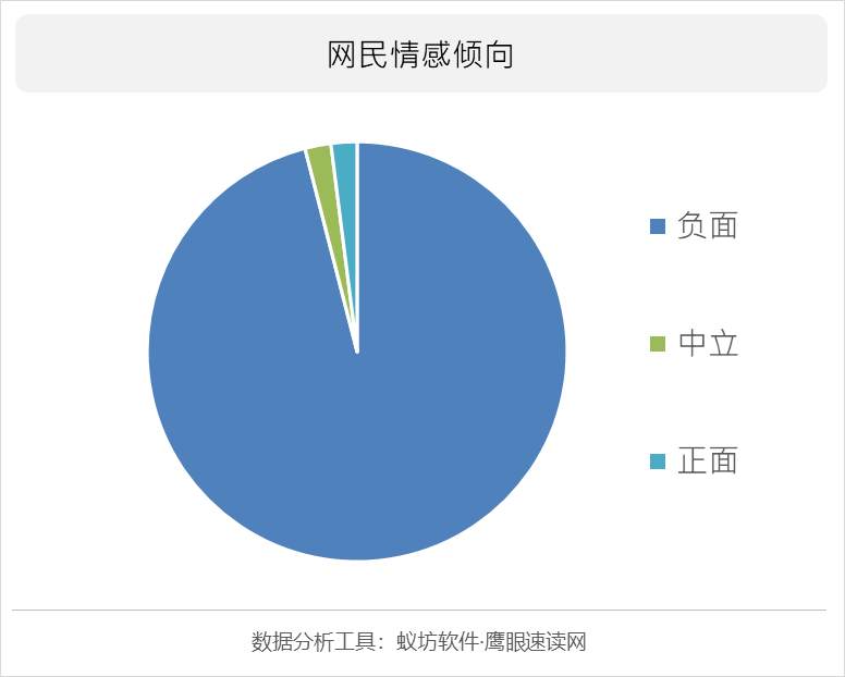 目前人肉搜索大多数时候作为网络暴力中较为典型的表现形式之一,在此次百万粉丝up主公开人肉教程的事件也招致了压倒性的舆论指责,据蚁坊软件舆情监测系统系统的分析,负面情绪表达高达96%,将这类主导性的看法作为此次网络舆情的主要研究对象,舆情主要在以下方面呈现: