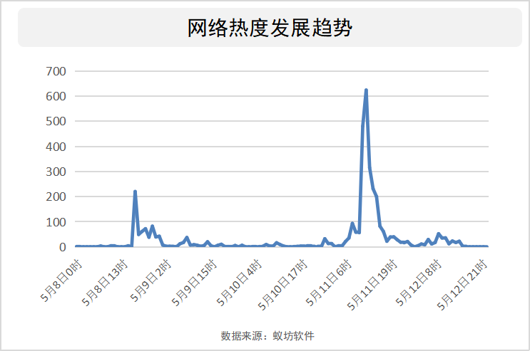 从相关网络信息的发展趋势来看,5月8日,国家网信办就2021年“清朗”系列专项行动有关情况举行发布会,其中就提到关于网络炫富短视频的治理将督促网站平台履行主体责任,建立黑名单制度。由于会议内容较丰富,当时舆论并未过分聚焦炫富短视频。5月10日,@每日经济新闻 发布#超6万条炫富短视频被清理#等话题,迅速在社交媒体上引发网民热议。而相关词条的热度也不断攀升,经过了新浪财经、曲靖检察等相继报道及部分网络大V参与讨论,同时也有网友质疑#炫富视频为何屡禁不止#、如何治理平台上的炫富视频等,由于涉及多方主体促使议题不断发散,舆情热度在5月11日11时左右达到高峰。