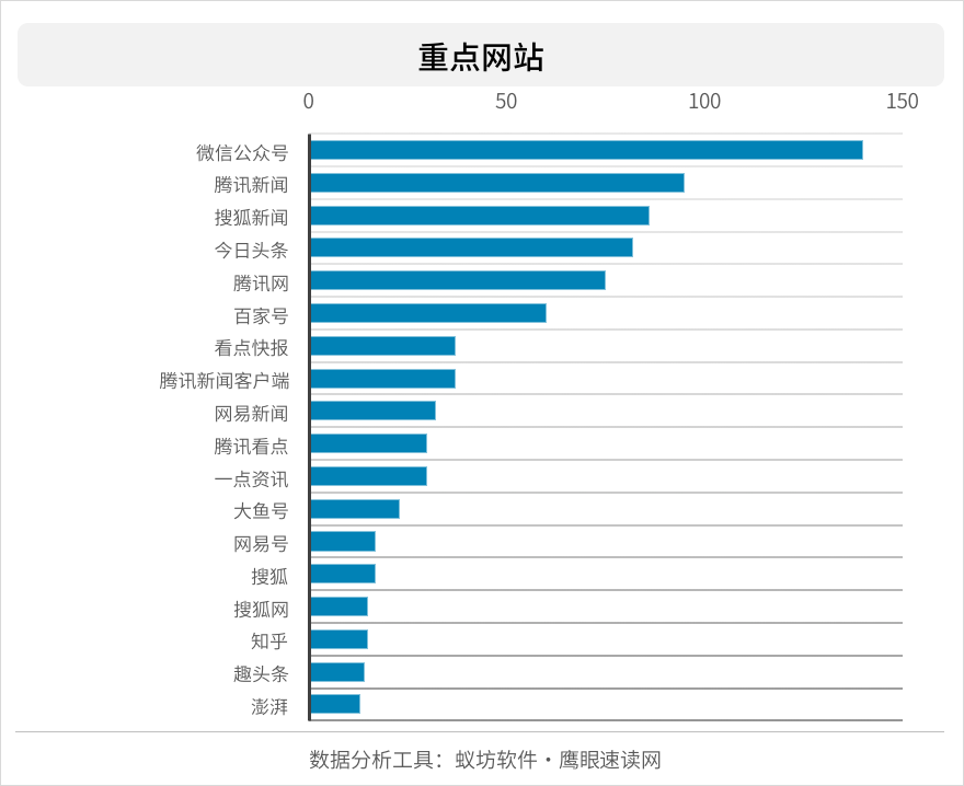 从互联网舆情监测软件鹰眼速读网对赵丽颖粉丝团被禁言事件重点传播网站来看,主要集中在微信公众号、腾讯新闻、搜狐新闻、今日头条、腾讯网、百家号等,新闻平台及自媒体平台为主要传播方式。饭圈文化缺乏引导和价值导向,大量网友被灌输了不正确的思想观念,致使出现很多疯狂的举动。缺少监管,致使资金问题浑水摸鱼的情况时有发生。随着政策的进一步加码,灰色产业链一定会不断被肃清、市场重新回归理性,饭圈文化也将被正常的娱乐文化所替代。