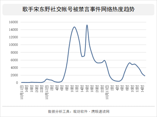 舆情爆发阶段:10月12日一早,宋东野此前发布的博文迅速在引爆网络热度,网友纷纷针对宋东野博文中的各种信息点展开抨击,其中不乏一些自媒体大V们的踊跃表达反对意见。