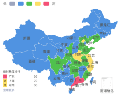 从关注行程码带星相关信息网民地域分布来年看,位于前三的分别是:广东、上海、河南。广东、上海等地经济较为发达,网民交互情况较为频繁,对于网络中的热点信息关注度及讨论度相对而言较高。临近春节,河南因前段时间的疫情防控而备受当地网友关注,#河南多地明确带星号可返乡#、#河南18地市最新春节返乡政策#等当地返乡政策的发布,牵涉到当地网友的返乡隔离等一系问题,因而受到当地网民热议。