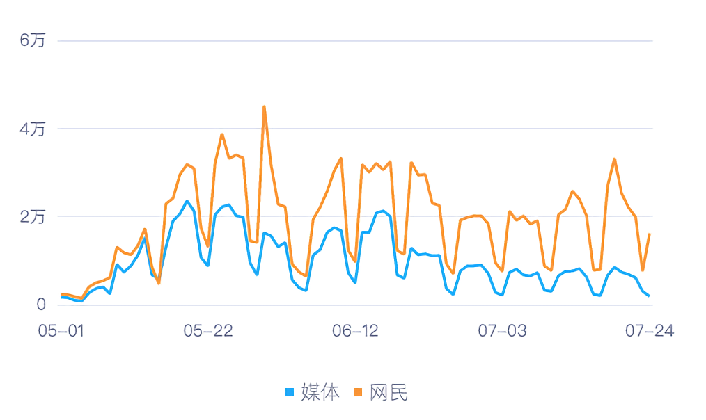 通过舆情趋势可知,有关“养老 诈骗”的舆情信息,媒体舆情于5月19日达到最高峰,网民舆情于5月30日达到最高峰。
