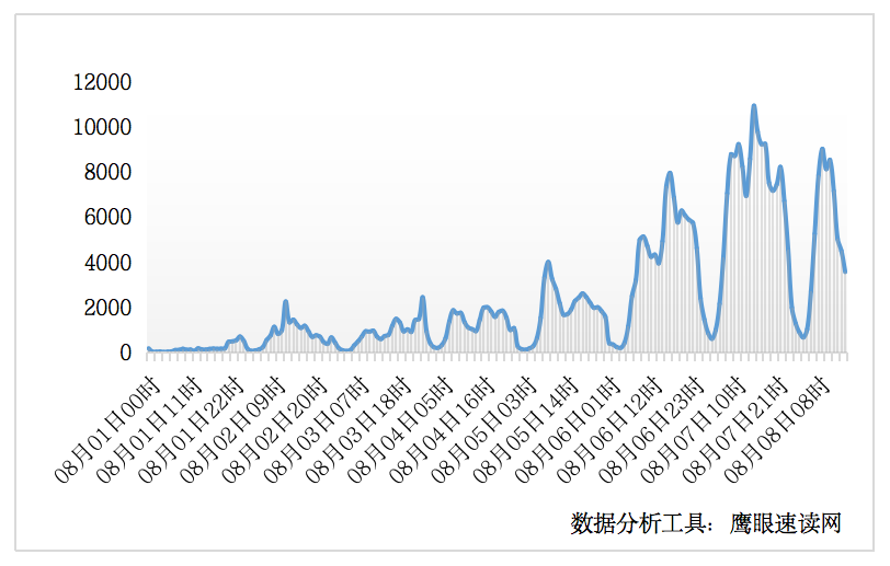 从8月1日00时至8月8日15时,全网有关“三亚疫情”的舆情信息呈上升趋势,其中,舆情最高峰出现在8月7日15时。