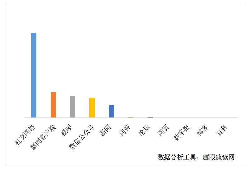 从整体上看,有关“三亚疫情”的舆情主要集中在"社交网络"平台,占比约为50.7%,其次为“新闻客户端”,占比约为15.3%;“视频”平台,占比约为13.1%。另外,在微信公众号、新闻平台中也有一定传播量。