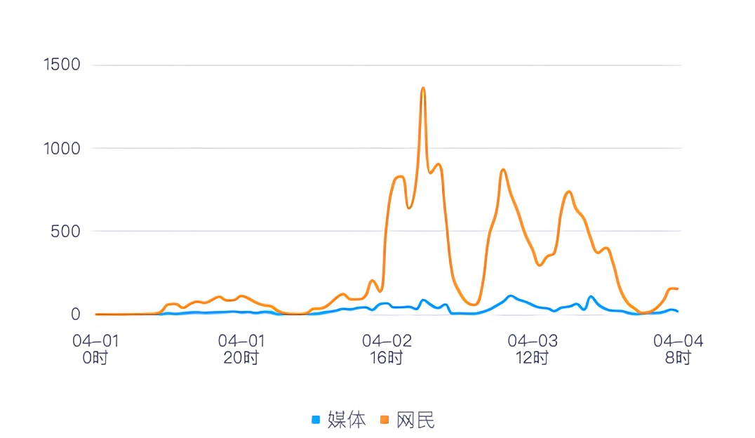 通过观察趋势可知,有关“宁夏固原师生徒步54公里祭英烈”的舆情信息传播情况:媒体舆情于4月3日9时达到最高峰,网民舆情于4月2日21时达到最高峰。