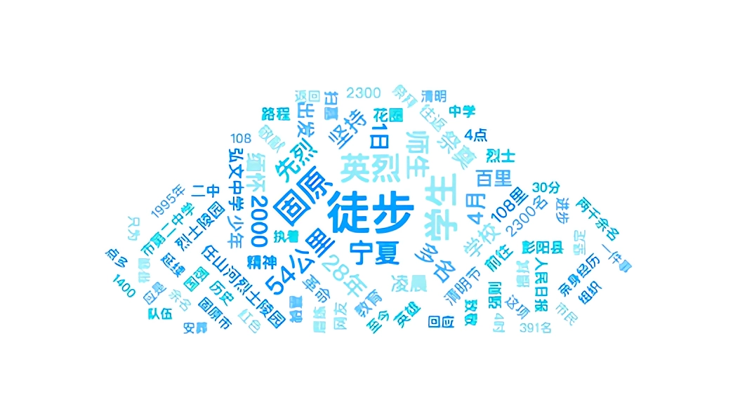 该时段内,有关“宁夏固原师生徒步54公里祭英烈”的话题提及频次较高的词语有“有意义”、“坚持”、“赞同”、“铭记历史”、“祭奠先烈、“容易受伤”、“锻炼”、“不忘先烈”等。