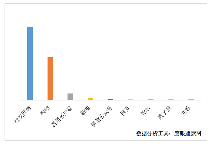 根据在线舆情监测系统蚁坊鹰眼速读网的分析,有关“天津一高楼发生火灾”的舆情主要集中在"社交网络"平台,占比58%。其次为“视频”平台,主要占33.9%以及“新闻客户端”平台,占5.3%。