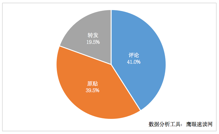 监测时段内,全网有关“天津一高楼发生火灾”的信息内容主要以评论为主,占41%,主要是对火灾现场相关新闻的传播、对起火原因的猜测、关注消防救援情况、人员安全等方面。其次为原贴,占39.5%,主要是对此次火灾相关新闻的传播。转发信息较少,占19.5%。