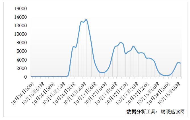 根据互联网舆情监测软件蚁坊鹰眼速读网系统的分析,从10月16日0时至10月18日9时,全网有关“成都女童小区内遭烈犬撕咬受伤”的舆情一直处于较高热度。相关舆论主要集中在10月16日、10月17日两天,其中热度最高峰出现在10月16日21时。