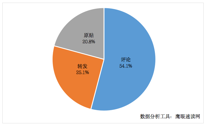 监测时段内,全网有关“成都女童小区内遭烈犬撕咬受伤”的信息内容主要以评论为主,占54.1%,其次为转发,占25.1%,原贴信息较少,占20.8%。
