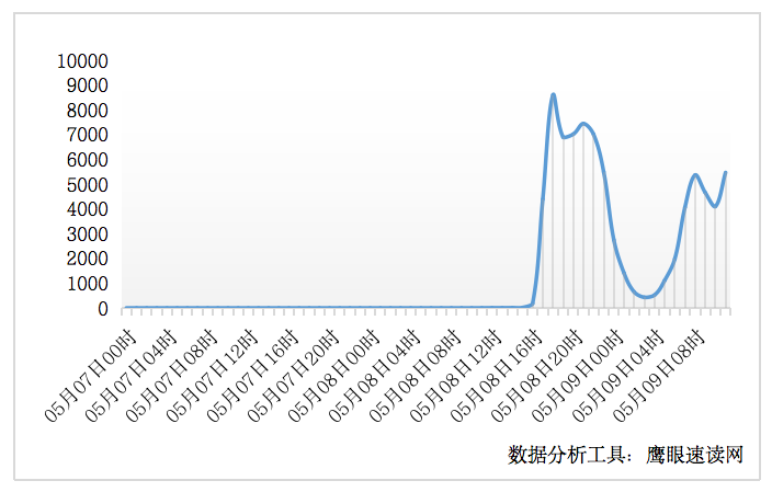 5月8日,有关“学校拟统一购买600元防攀比鞋”相关新闻、学校及当地教育部门的回应等信息经过意见领袖、草根帐号在社交网络、视频平台、新闻客户端等平台进行传播,带动网络热度短时间内达到高峰。9日,相关新闻及当地相关部门回应等信息依然在社交平台中有一定量的传播。