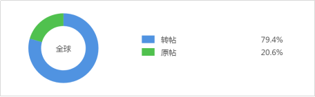 由上图可知,有20.6%的网民针对该话题发表了原创观点或消息,而其他79.4%的网民转评了这些信息,帮助话题大规模传播,增强了话题的影响效果。