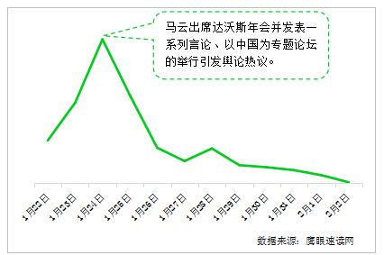 1月24日,“中国经济战略展望”和“全球化4.0,中国在未来全球商务中的角色”两场以中国为专题的论坛也格外引人注目,使得舆情量于1月24日到达最高峰。