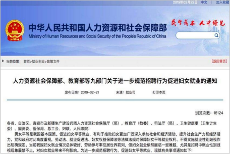 网络标签:九部门 妇女 招聘 求职 询问 婚育 歧视 男女平等