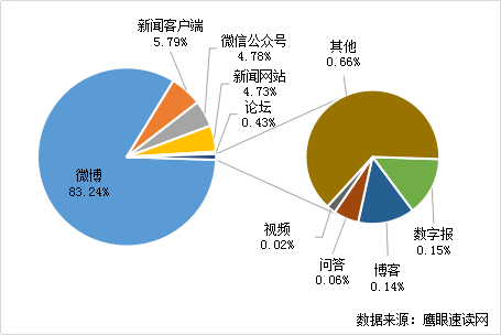 全网有关“九部门要求招聘不得询问妇女婚育情况”的信息中,微博的传播量排第一,占比83.24%。《通知》发布后,@人民日报、@央视新闻、@共青团中央等媒体博主和政务博主第一时间在微博传播相关信息,凭借其庞大的粉丝量,消息迅速扩散。@李银河、@连鹏、@周鱼等大V博主就此事发表自己的看法,引发网民热议。新闻客户端和微信公众号的传播量排第二、第三,占比分别为5.79%和4.78%。这两个平台同质化比较严重,大部分是客观地传播《通知》内容、对网民言论进行分类,并无太多的分析,也有部分原创文章,如《招聘不得问女性婚育,真能减轻就业歧视嘛?防不胜防!》《九部委禁止招聘时询问女性婚育情况,初衷虽好,实效堪忧》等,推进了事件的传播扩散。