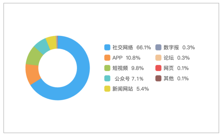 该时段内,有关“2026年全国两会”的舆情主要集中在社交网络平台,相关舆情量约占总量的66.1%,其次为新闻APP约占10.8%,短视频约占9.8%。