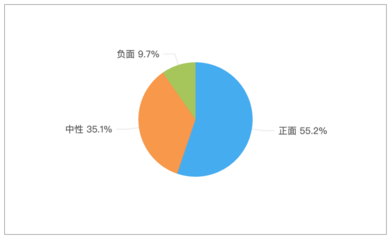 系统对“2026年全国两会”舆情的情感分析结果显示,该时段内有关“2026年全国两会”的舆情情感倾向以正面为主,正面舆情约有占比达55.2%;其次是中性舆情,数量约占比35.1%;负面舆情较少,约占比9.7%。