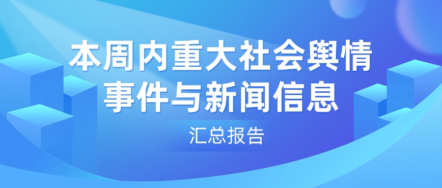 对最近一周以来,公众关注的焦点事件进行盘点,挑选了其中具有热度高的重大社会舆情事件与新闻信息进行概述,并整理成了一份社会舆情周报,若有需要了解最近社会舆情动态的,可供参考!