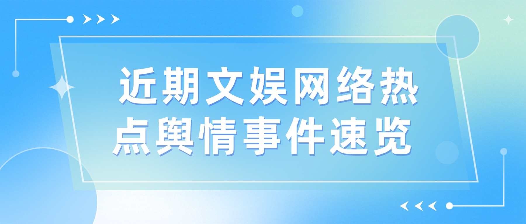 近期,多起文娱舆情事件不再止于娱乐新闻的范畴,而是延伸至法道德、行业规范等公共议题的讨论。现将近期文娱网络热点舆情进行整合速览,为舆情预警、风险研判与行业治理提供快速参考。
