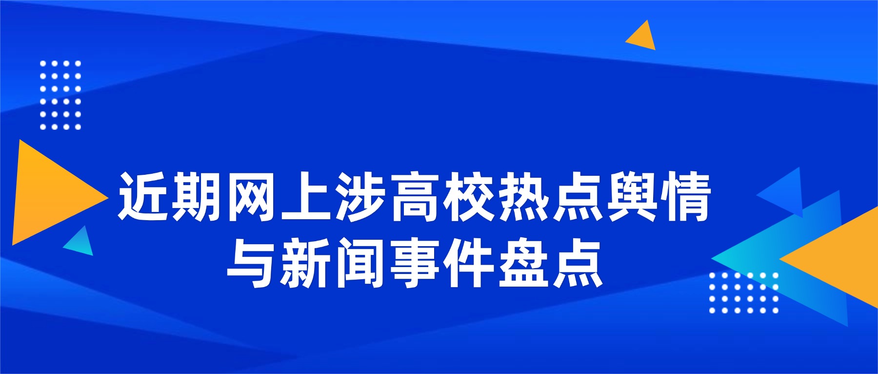 近期网上发生了哪些涉高校的热点舆情事件呢?为助力各位精准把握高教领域舆论态势、提前防范校园舆情风险,本文全面盘点近期各高校网上热点舆情与新闻事件,并梳理对应的事件概况,以供参考。