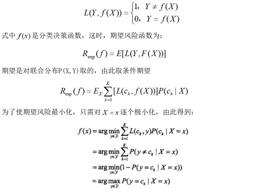 朴素贝叶斯法将实例分到后验概率最大的类中,这等价于期望风险最小化,假设选择0-1损失函数: