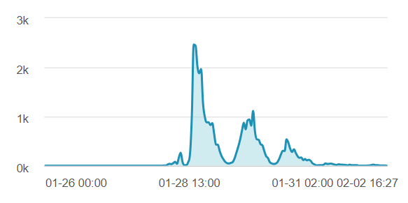 由上图趋势可以看出,全网有关“杭州一金店使用鬼秤被罚”的舆情最高峰出现在01月29日08时。
