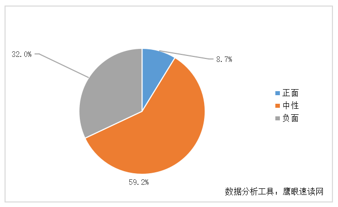 由上图可以看出,全网有关“两男子猥亵5名足浴店女技师被行拘”的信息内容主要以中性为主,占59.2%,其次为负面,占32%,正面信息较少,占8.7%。