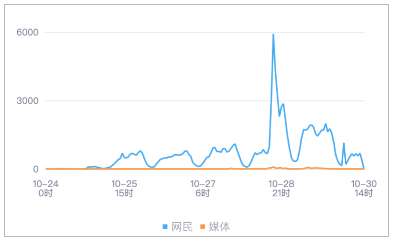 该时段内,境内有关“广州一动物血库灰色产业曝光”的舆情信息,媒体舆情于10月28日17时达到最高峰,网民舆情于10月28日17时达到最高峰。
