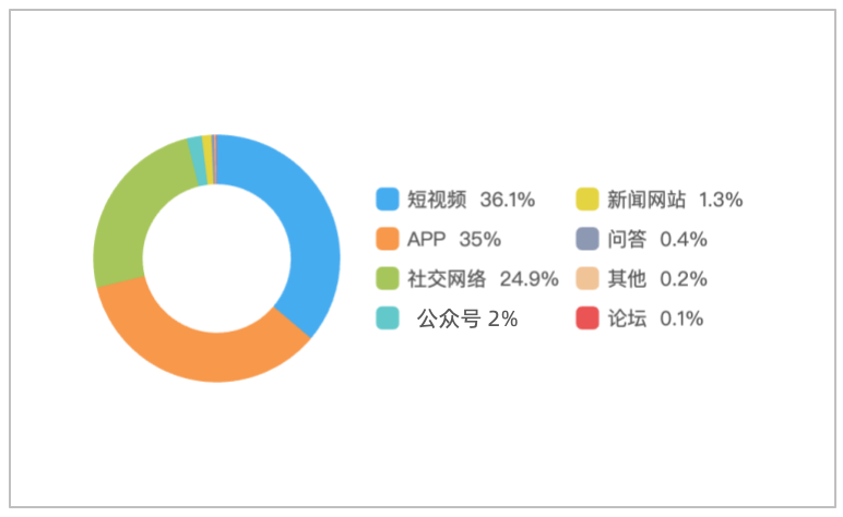 该时段内,境内有关“神舟二十号返回任务将推迟进行”的舆情主要集中在短视频平台,相关舆情量约占总量的36.1%,其次为新闻APP约占35.0%,社交网络约占24.9%。