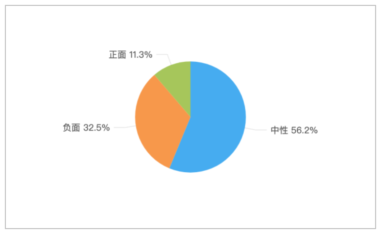 该时段内,境内有关“重庆一河流污染严重”的舆情情感倾向中,中性舆情占比最多,达到56.2%;负面舆情占比次之,为32.5%;正面舆情占比较少,仅占11.3%。