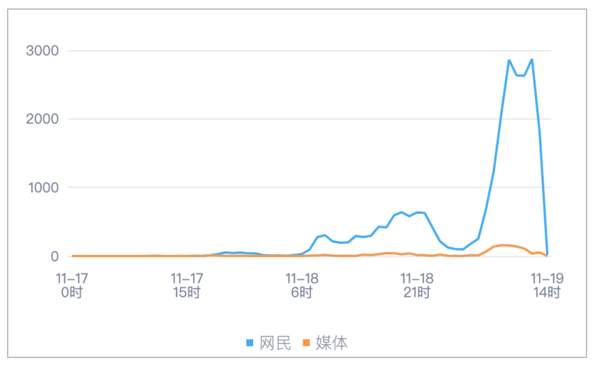 该时段内,境内有关“江苏科技大学博导被指履历造假”的舆情信息,媒体舆情于11月19日08时达到最高峰,网民舆情于11月19日12时达到最高峰。