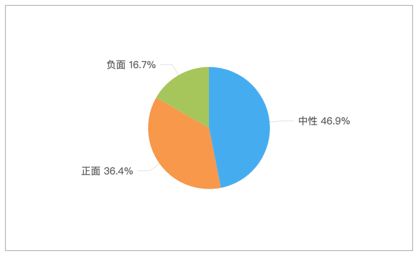 该时段内,关于“杭州灵隐飞来峰景区实施免票政策”的境内舆情情感倾向中,中性舆情占比最多,达46.9%;正面舆情次之,占36.4%;负面舆情较少,占16.7%。