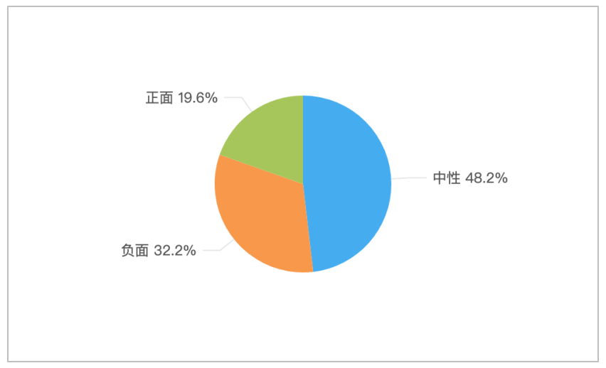 该时段内,境内有关“彝族老人在凉山公益列车上遭围拍”的舆情中,中性情感倾向的舆情占比最多,为48.2%;负面舆情占比次之,为32.2%;正面舆情较少,占比为19.6%。