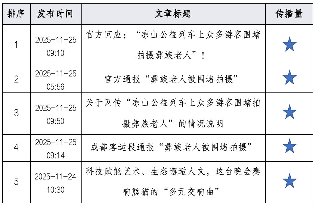 (三)关注列车运营方的责任与应对措施据【成都客运段通报】、【人民网评】、【新浪热点】报道,此观点集群将焦点转向事件中的另一方——列车运营管理部门。核心论点是质疑列车工作人员在现场是否尽到了应有的管理和干预责任。典型论据是目击者称有列车员经过围观现场却仅以调侃语气提及“长枪短炮”而未加制止,这被批评为纵容或失职。尽管官方通报称“未接到被拍摄者求助”且“未发生争执”,但该集群观点认为,面对明显的群体性围拍行为,运营方应主动介入,建立并执行更积极的预防和制止机制,例如加强巡视、明确相关规定乃至设立“黑名单”制度,以维护车厢的基本秩序与旅客尊严。